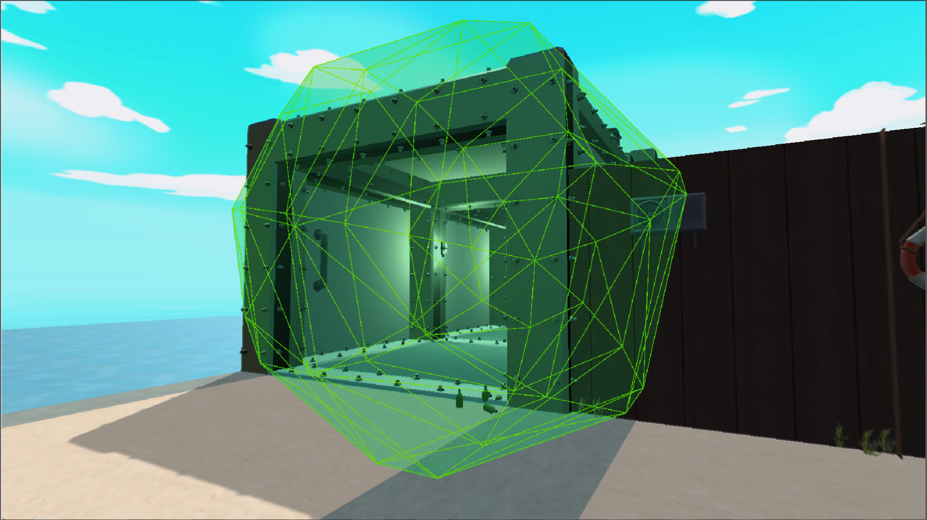The fog density texture estimates its density by generating a perlin noise texture designed to simulate fog. Two external parameters were sent to the compute shaders to simulate wind in any direction.By this point the volume can be rendered as any other model. But there is a problem! When outside of the volume everything looks correct, but as soon as the camera enters the volume nothing happens. This happens because when inside the volume we only see back facing triangles and since the renderer is per default set to only render front facing triangels it therefor doesn’t run the required pixel shader on the volume.